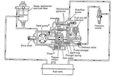 Komponen Sistem Bahan Bakar Diesel. Fungsi Dan Cara Kerjanya,- Sistem injeksi bahan bakar pada mesin diesel merupakan sistem paling penting di antara sistem-sistem yang lain. Dengan sistem injeksi bahan bakar yang baik dan tepat akan menghasilkan tenaga mesin yang optimal. Sebaliknya sistem injeksi bahan bakar yang kurang baik dan kurang tepat dapat menyebabkan tenaga mesin diesel kurang optimal, bahkan mungkin saja mesin diesel tidak dapat dijalankan sama sekali. Banyak orang yang menyatakan bahwa sistem injeksi bahan bakar pada mesin diesel merupakan jantung hidup matinya mesin.
